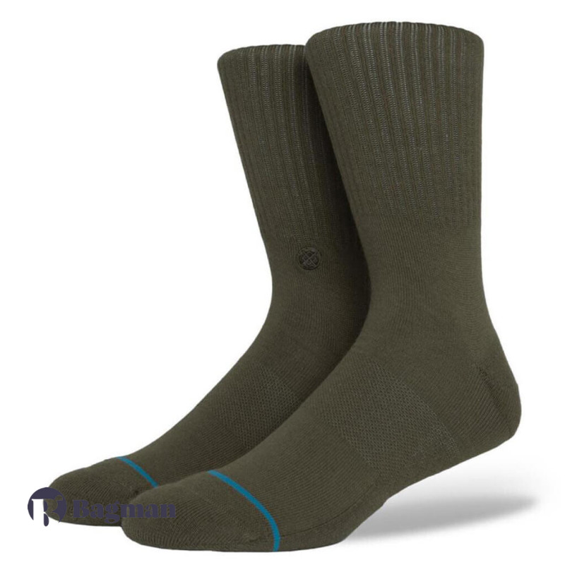 Stance ICON GREEN М — це пара повсякденних шкарпеток від американського бренду. Універсальні шкарпетки мають класичну посадку і середню товщину. Вони пошиті з бавовни, яка пропускає повітря. Для того щоб підвищити зносостійкість шкарпеток їхні пальці і п'яти ущільнені.