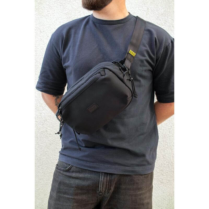 Компактна альтернатива рюкзаку, що дозволяє тримати найнеобхідніші речі під рукою, коли вони вам потрібні. Виготовлена із унікальної погодостійкої тканили Tourshell, яка має покращену стійкість до зносу. Нейлон Tourshell розроблений для виготовлення мото спорядження: тканина має відмінні довговічність і стійкість до дощу. На тильній стороні сумки є більш захищена кишеня на блискавці для цінних речей. Завдяки регульованому ременю шириною 40 мм сумку можна носити на талії або як слінг.