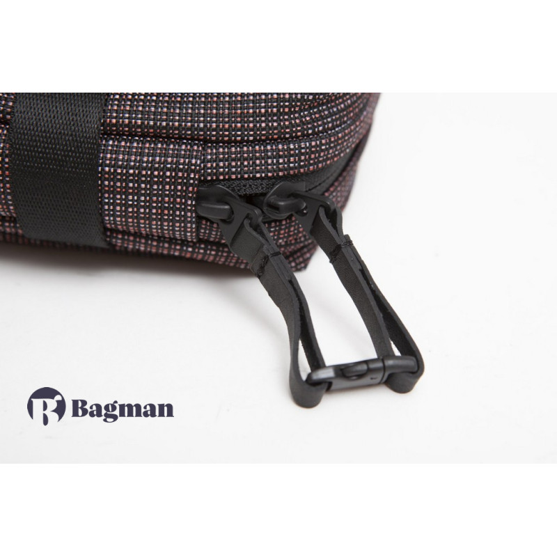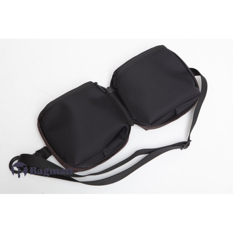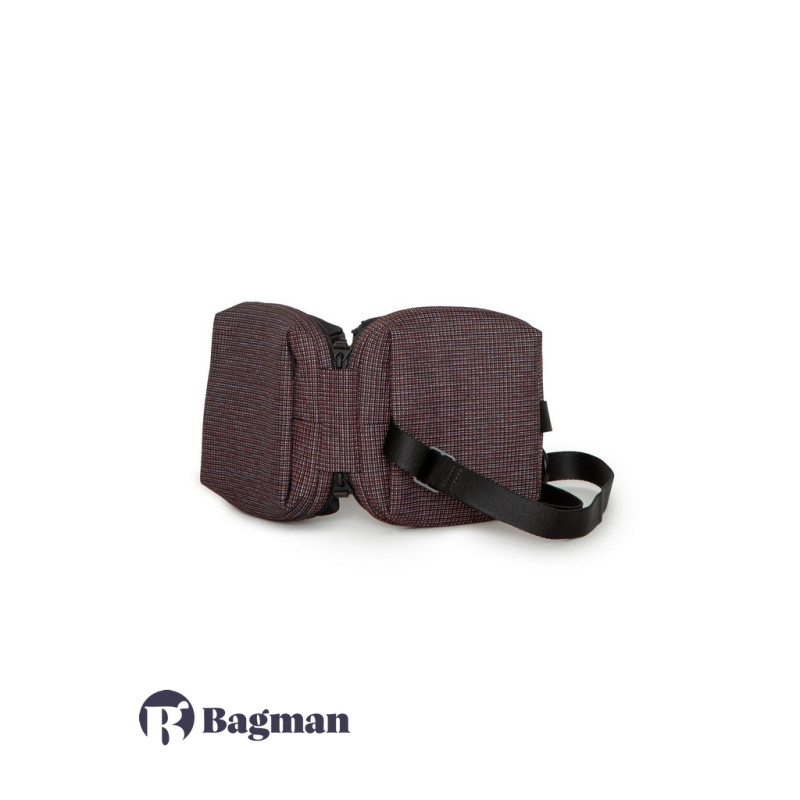 Сумка має два відділення на застібках, які дозволяють розділити речі і легко їх знайти. Відділення можна з'єднати разом або залишити їх роздільними, таким чином, сумка перетвориться на двосекційний аксесуар з візуально меншим об'ємом. Регульований ремінь дасть змогу розмістити сумку на плечі, на грудях і на поясі.