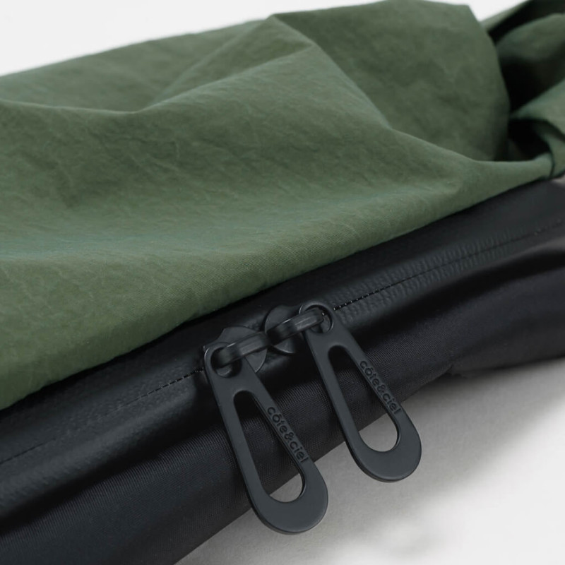 cote&ciel Neda Komatsu Onibegie Nylon Olive Green — це невелика повсякденна сумка від французького бренду, який відомий своїми технологічними аксесуарами незвичайної форми.