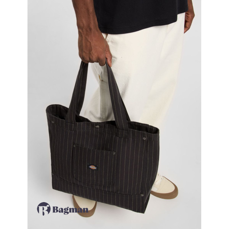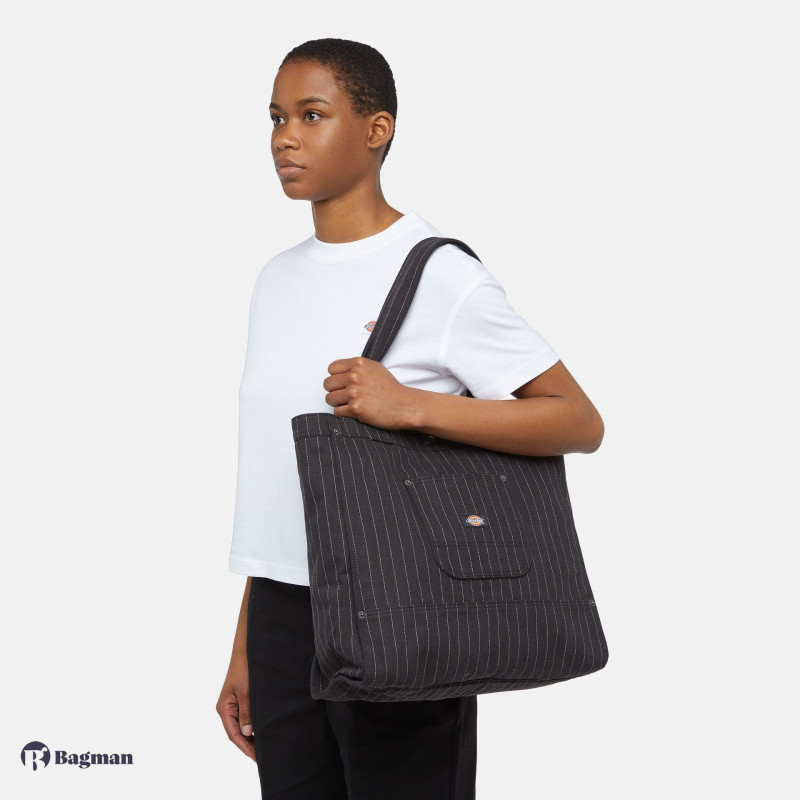 Примітка від команди Dickies: Натхненна робочим одягом, сумка Service Tote Bag — це щільна джинсова бавовняна сумка з вертикальною службовою смужкою, металевими заклепками та металевою застібкою на кнопці. Зовнішня накладна кишеня пропонує додаткове місце для зберігання речей та має культовий тканий лейбл Dickies.