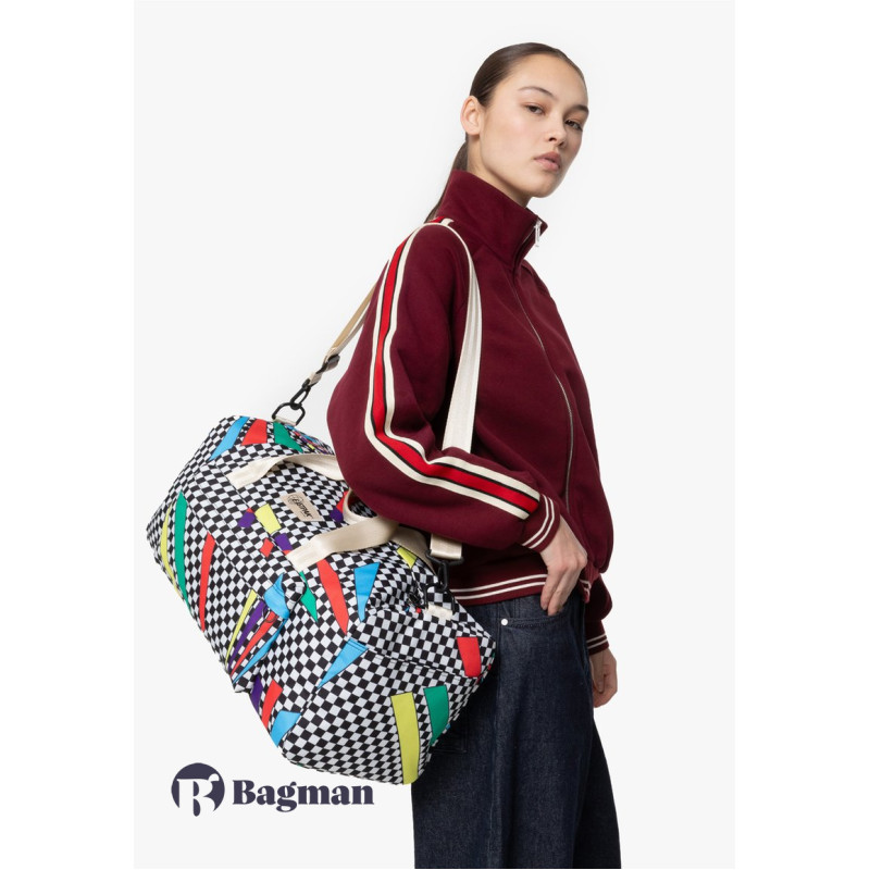 Наша ретро-колекція відроджує культовий абстрактний принт з архіву Eastpak 80-х років. Ця спортивна сумка, готова до пригод, має просторе основне відділення для вашого спортивного або туристичного спорядження та регульований плечовий ремінь для носіння без використання рук.