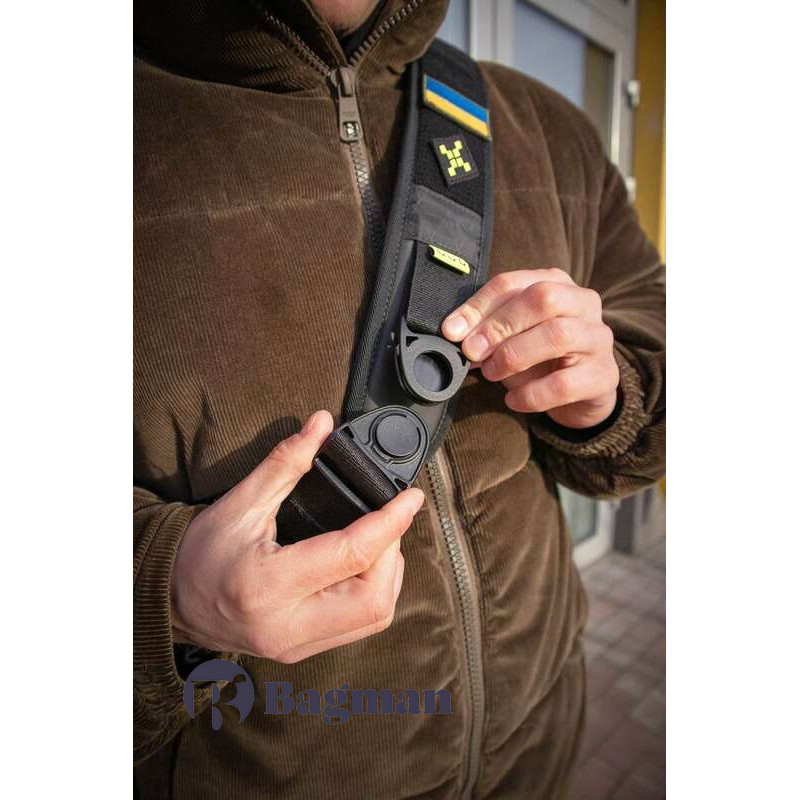 - З'ємна і регульована основна лямка має Velcro липучку, яка дозволяє прикріплювати патчі не тільки на саму сумку, але і на стропу спереду