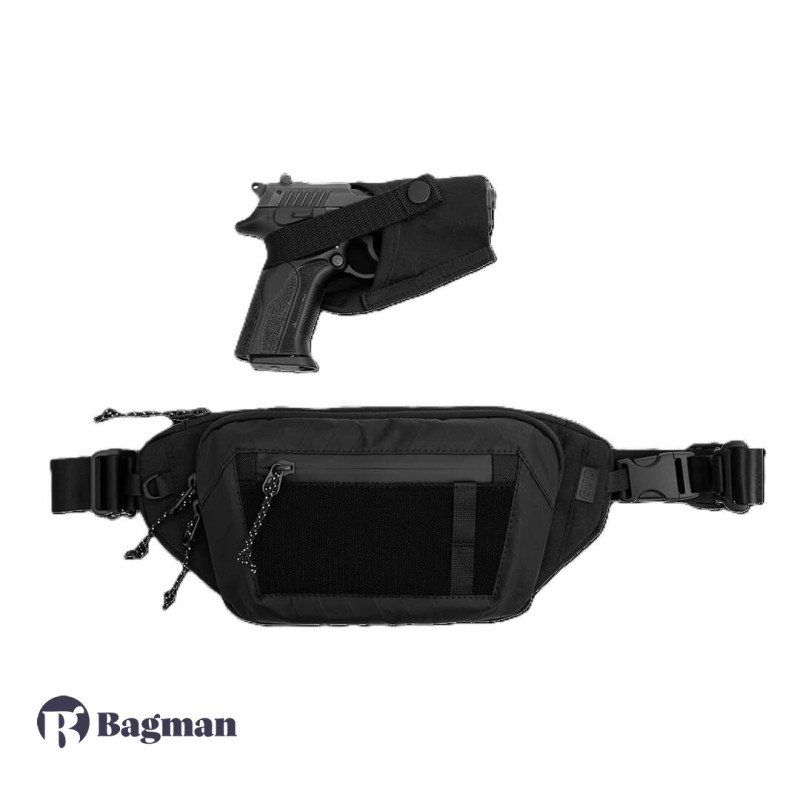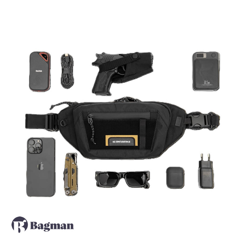 Всепогодна поясна/кросбоді-сумка із прихованим відсіком для носіння особистої зброї і додатковими кишенями для зручного зберігання дрібних речей і гаджетів