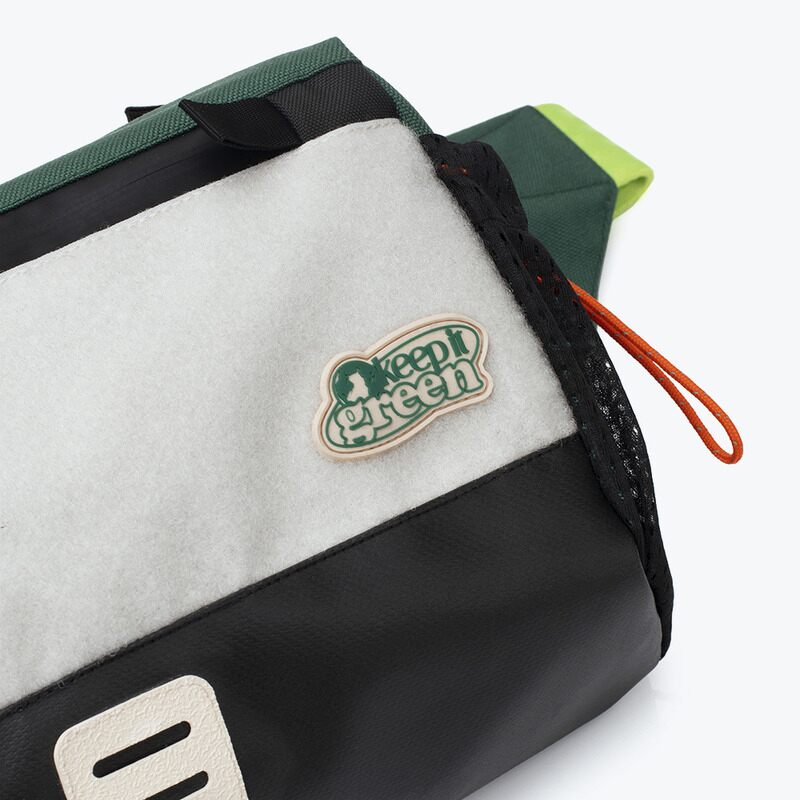 Внутрішня система організації дозволяє впорядкувати кабелі, навушники, з іншого боку подвійний карман. Зовні бічні сітчасті кишені. Фронтальна кишеня з карабіном для ключів і швидким доступом. Система швидкого ослаблення поясного ременя з анатомічними виносами робить слінгпек ще комфортнішим у використанні.