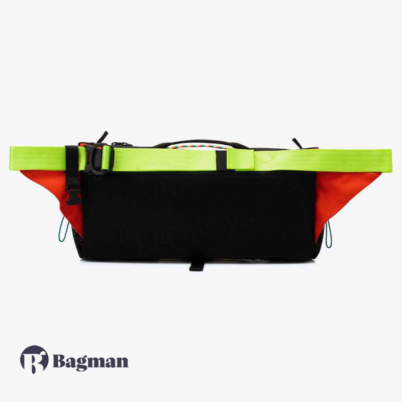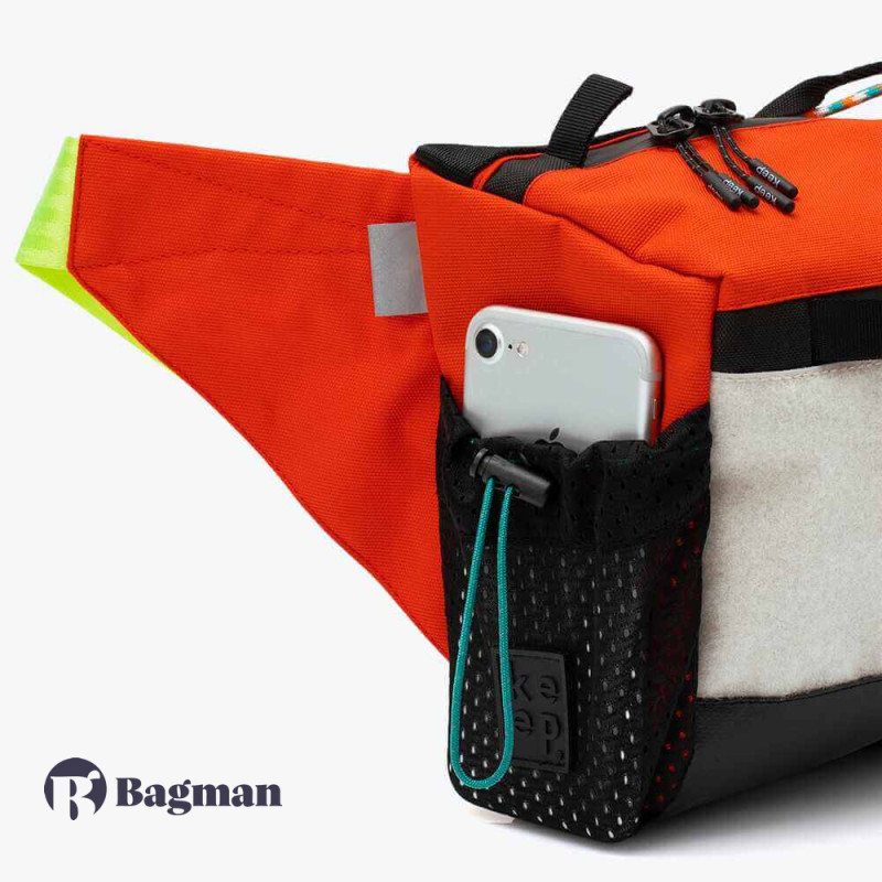 Внутрішня система організації дозволяє впорядкувати кабелі, навушники, з іншого боку подвійний карман. Зовні бічні сітчасті кишені. Фронтальна кишеня з карабіном для ключів і швидким доступом. Система швидкого ослаблення поясного ременя з анатомічними виносами робить слінгпек ще комфортнішим у використанні.