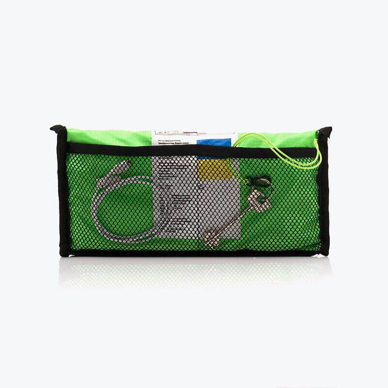 Всередині є органайзер для дрібниць, який зроблений з еластичної стрічки. На протилежному боці розташовані сітчасті кишені. Сумка доповнена переднім відділенням і двома бічними еластичними кишенями. Двосторонні зовнішні блискавки водонепроникні.