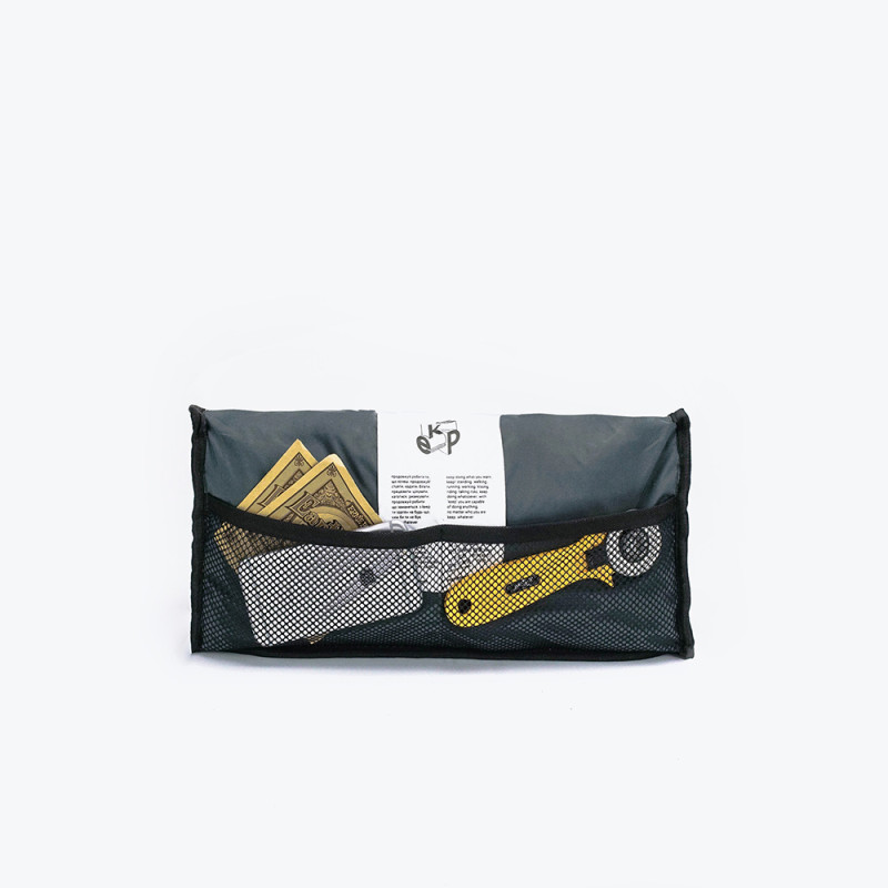 Основний відсік виробу здатний помістити дволітрову пляшку води, ліхтар або фотоапарат. Також сюди поміщається планшет розміром до 8-ми дюймів. Еластична стрічка всередині формує зручні відділи для зберігання дрібниць і інструментів. Є внутрішні сітчасті кишені і зовнішні. Відділення спереду містить кріплення для ключів.