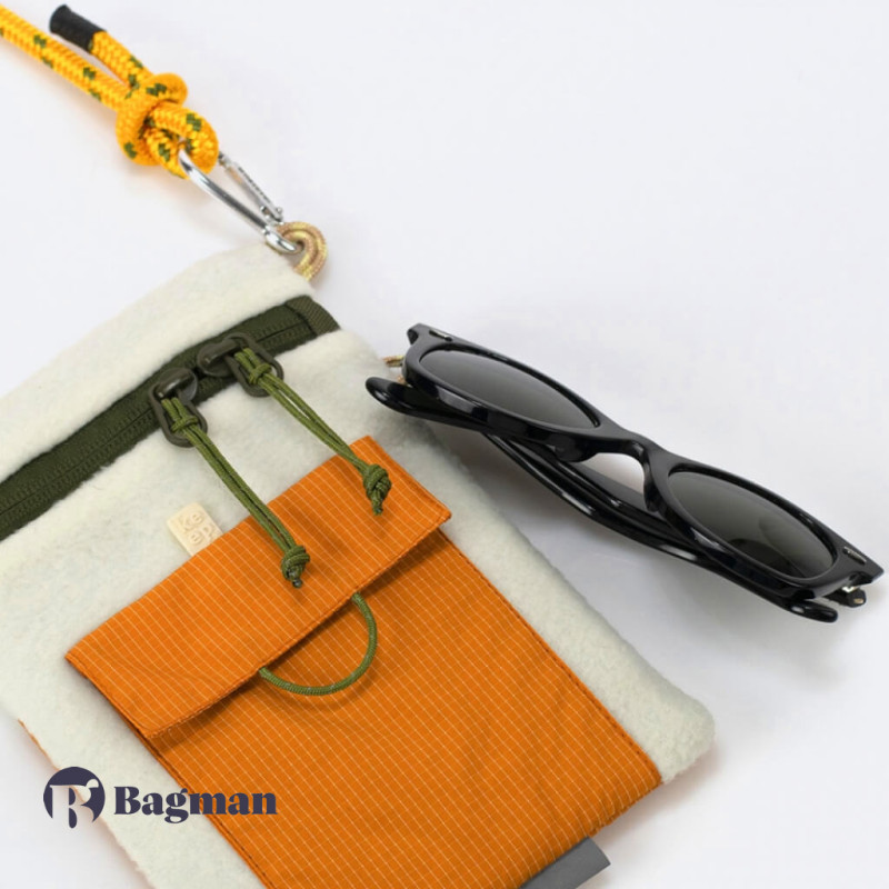 Сумка складається з одного головного відділення, всередині якого є кріплення для ключів. Внутрішня підкладка зроблена з ріпстопу. Застібається сумка двосторонньою блискавкою. Ззаду і спереду є додаткові кишені. У сумку поміститься телефон і документи, готівка та картки, серветки, ключі, а збоку можна прикріпити сонцезахисні окуляри.