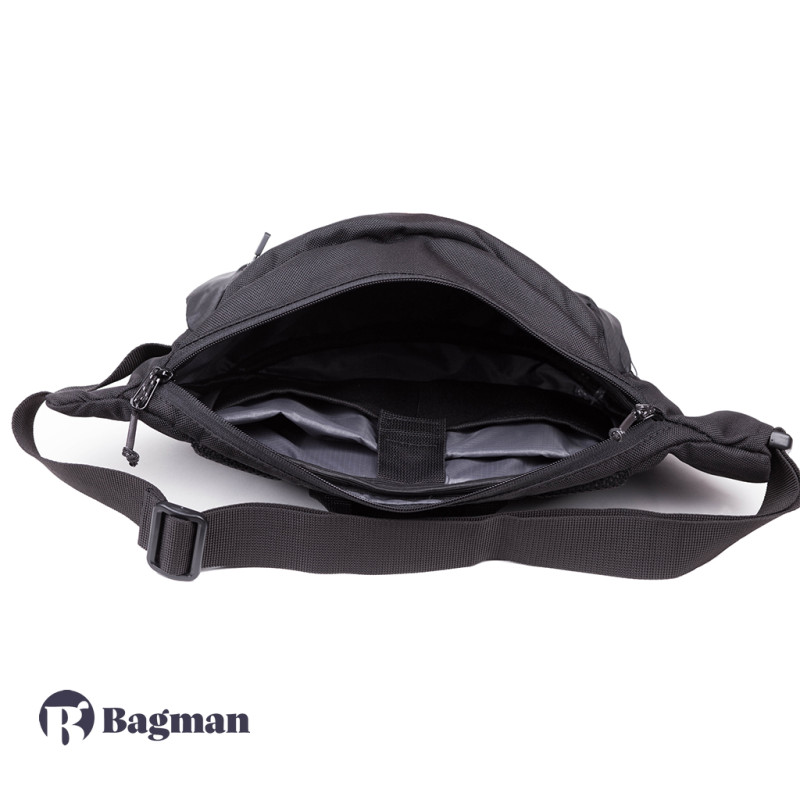 Поясна сумка Big bag має великий об'єм і здатна вмістити велику кількість необхідних предметів, для кожного з яких передбачене своє місце. Сумка зручно сидить на поясі завдяки широкому ременю і регульованій довжині. Ремінь з'єднується фастексом, який вкладається в спеціальну нішу, що захистить від крадіжки.