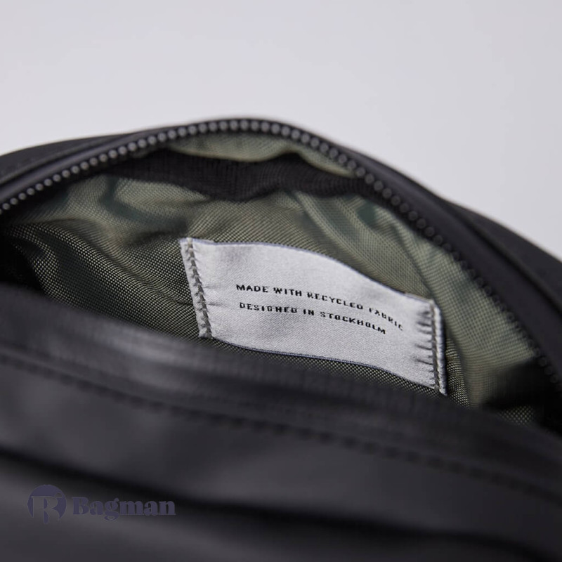 Сумка пошита з переробленого поліестеру. Зовні матеріал покритий поліуретаном для відштовхування вологи. Блискавки YKK також перешкоджають потраплянню вологи всередину.