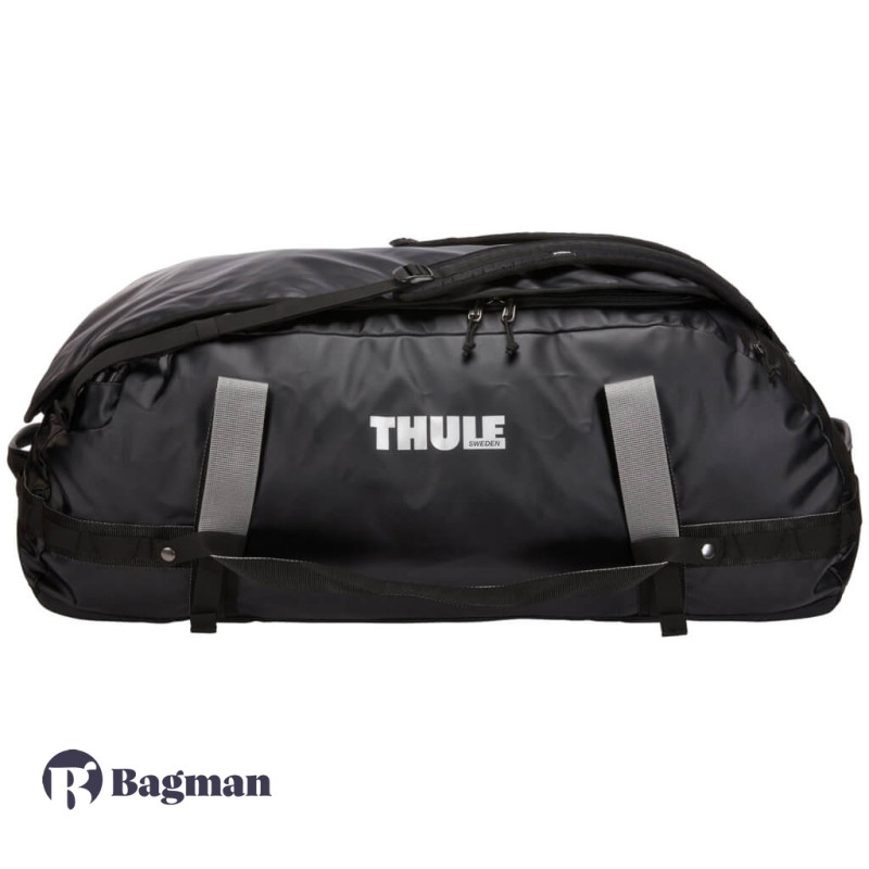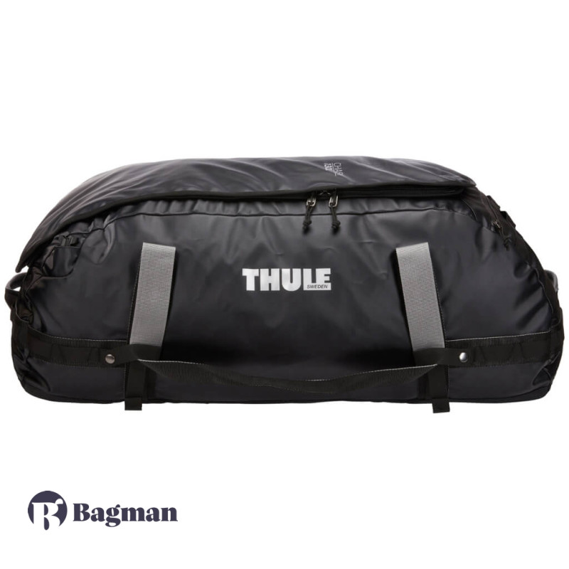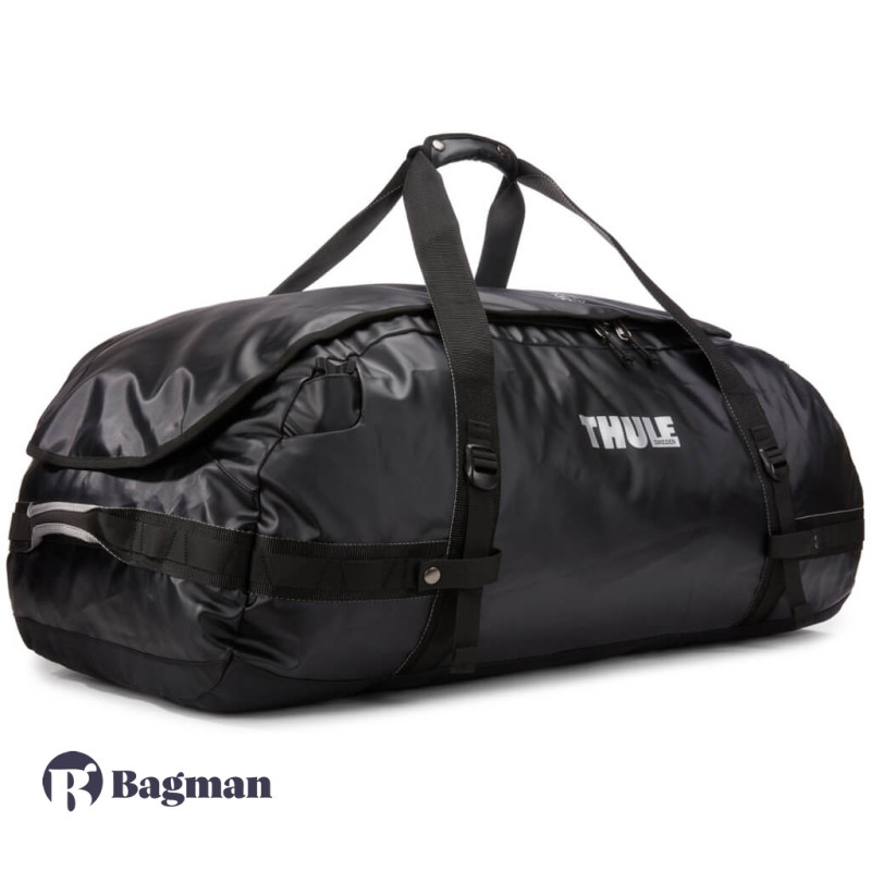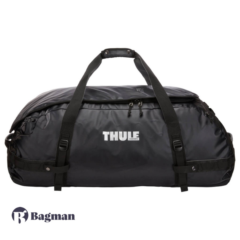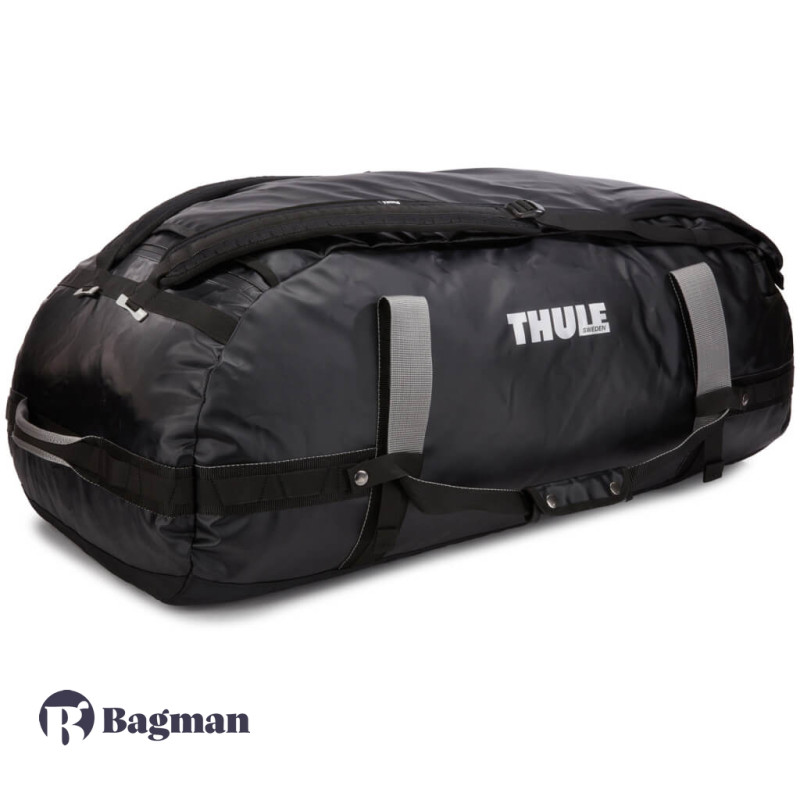 Thule Chasm 130L Black — це найбільша дорожня сумка від даного бренду. Вона виконана в спортивному стилі і трансформується в рюкзак, щоб легше було нести важкий багаж. Аксесуар виготовлений з міцного і водовідштовхуючого нейлону.