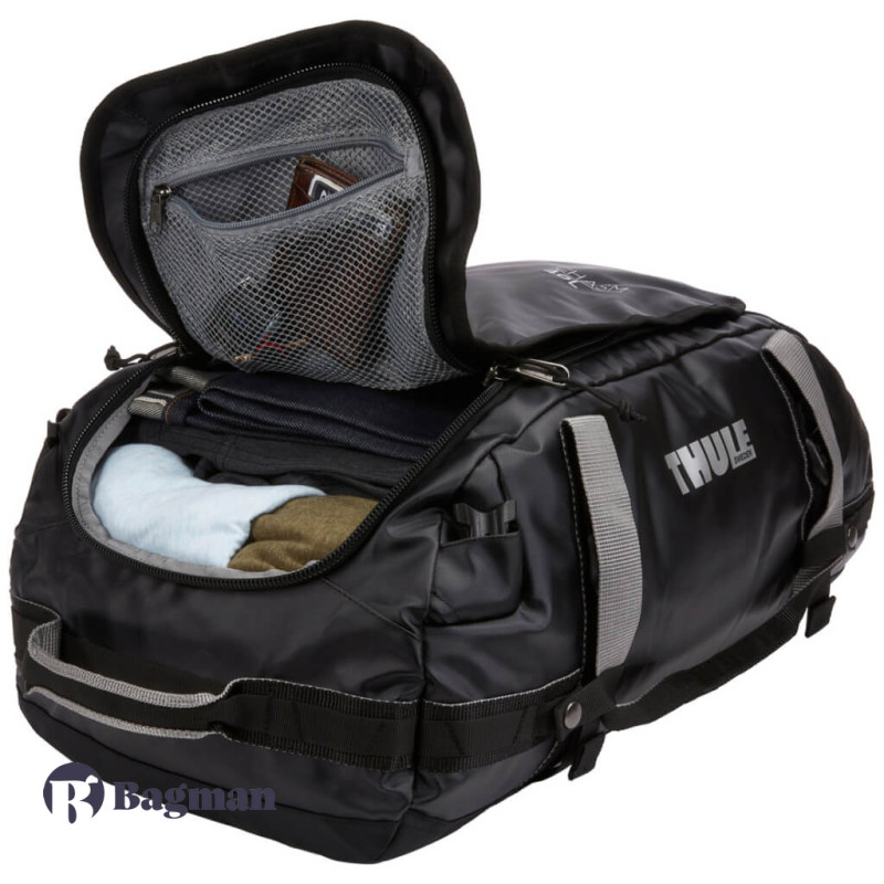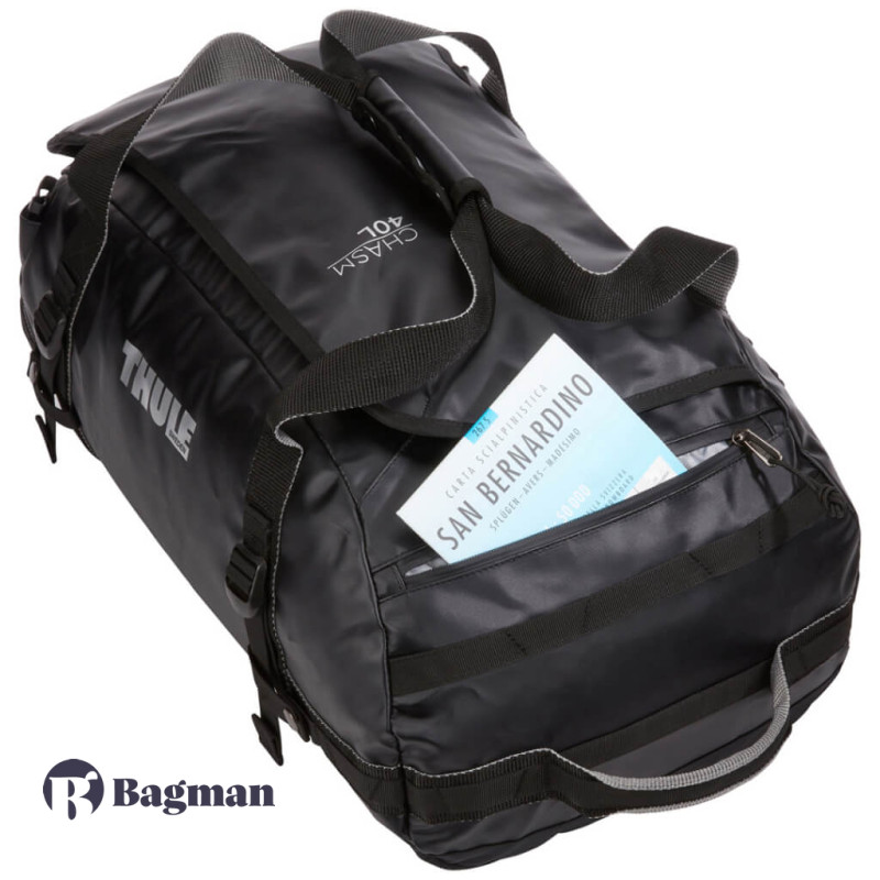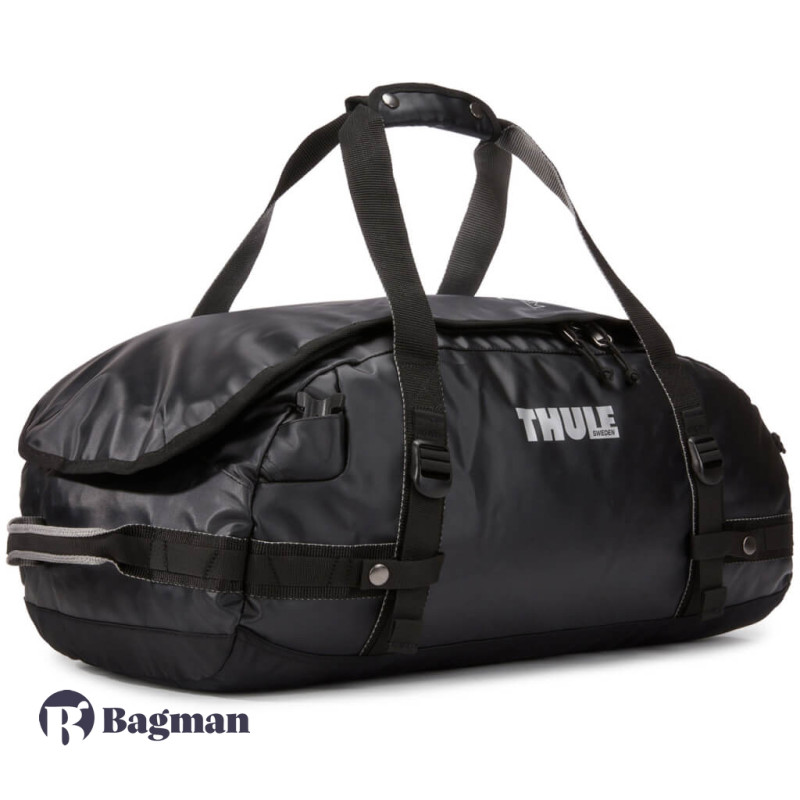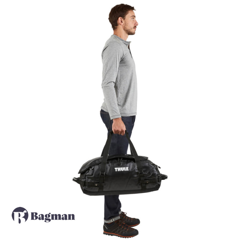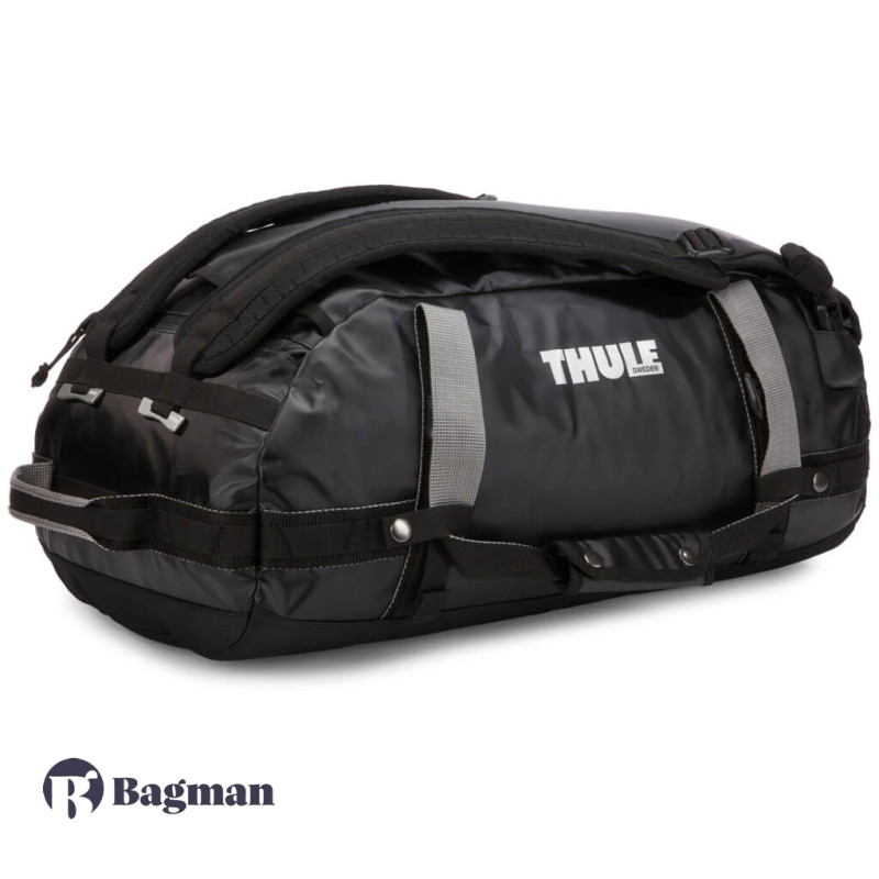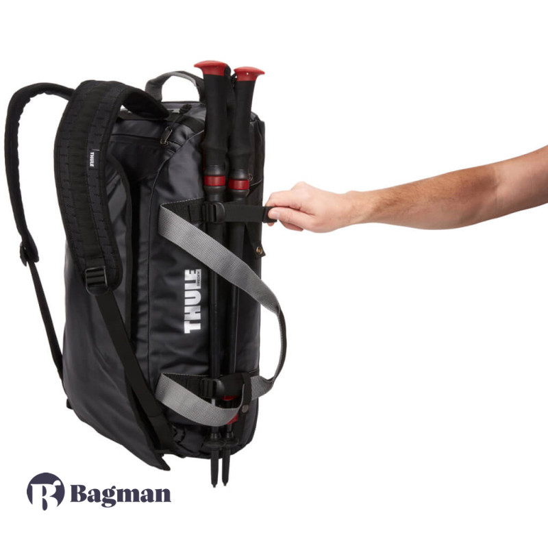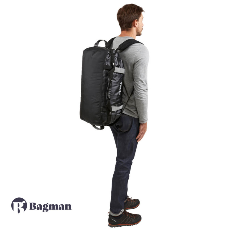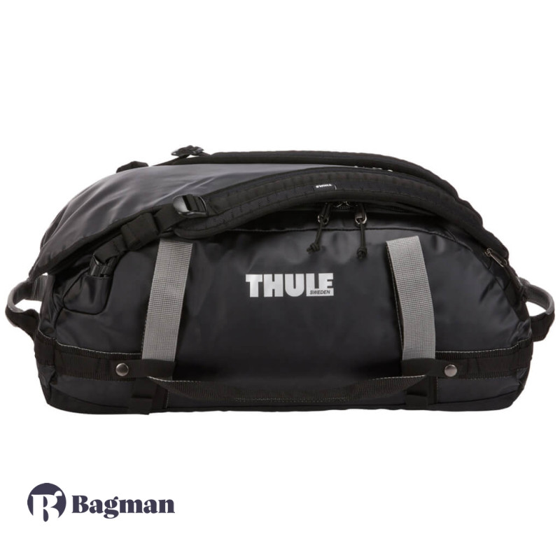 Сумка Thule Chasm 40L Black — це невеликий дорожній аксесуар, який перетворюється на рюкзак. Зйомні плечові лямки кріпляться до корпусу, а ручки від сумки пристібаються кнопками з обох сторін. Також є короткі ручки, щоб нести сумку або рюкзак у руці. Виріб виконаний з водонепроникного нейлону чорного кольору.
