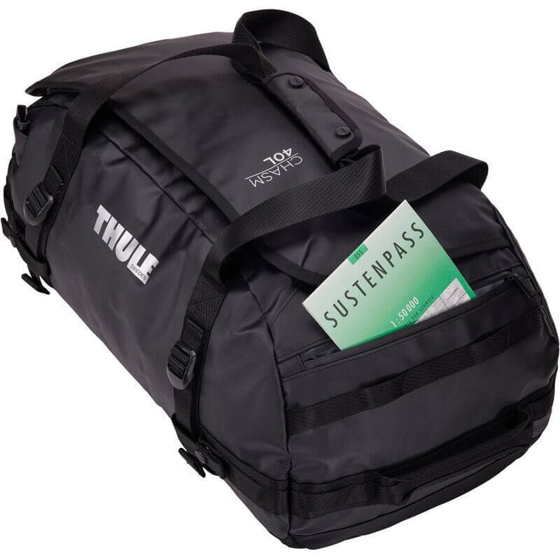 Chasm Duffel 40L - це оновлена міцна, всепогодна спортивна сумка від Thule із ременями як у рюкзака, які знімаються, та великим кутом відкривання.