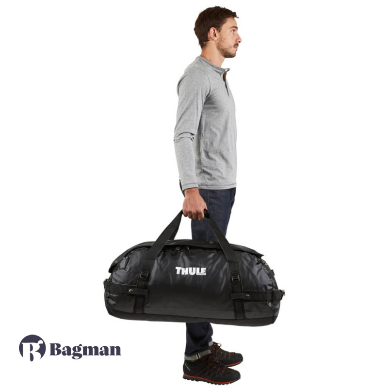 Thule Chasm 90L Black — це дорожній аксесуар 2 в 1, який можна нести, як сумку або як рюкзак. Матеріал виготовлення відштовхує вологу. Для зручного зберігання сумку складають в окремий чохол. Він підійде і для зберігання речей всередині великої сумки.