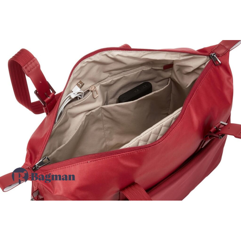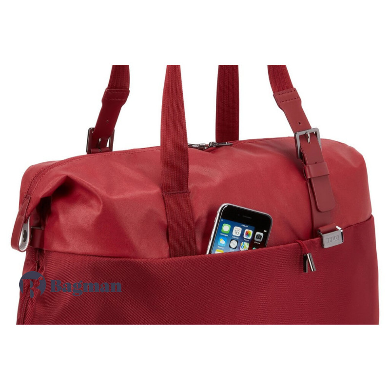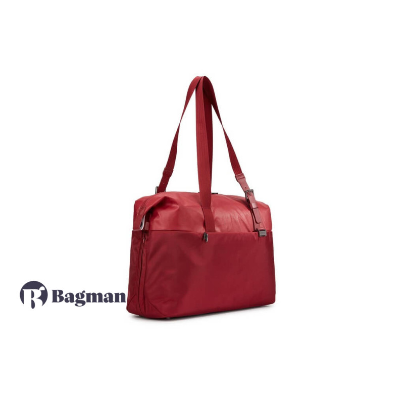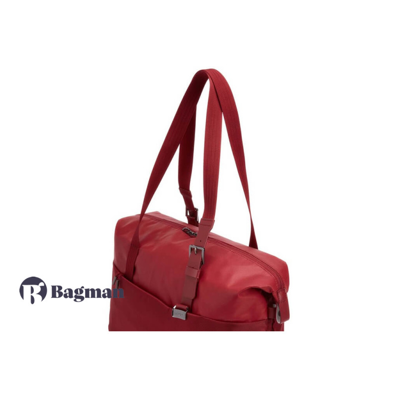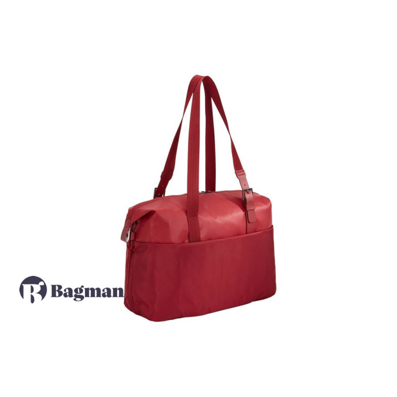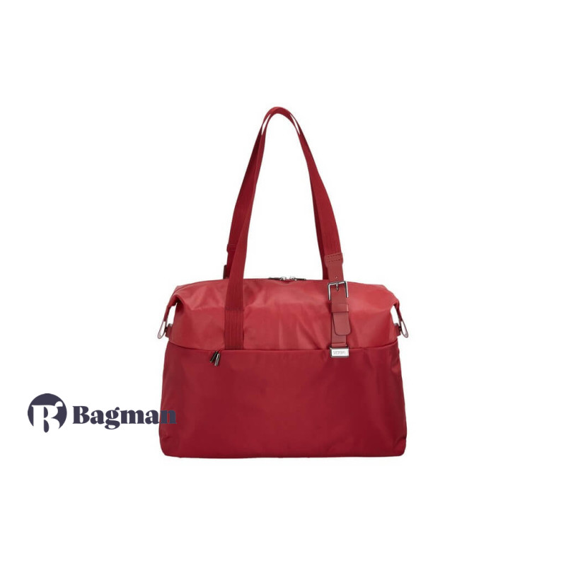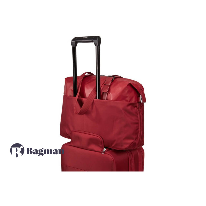 Універсальна сумка Thule Spira Horizontal Tote Rio Red з простою конструкцією використовується в повсякденному житті і в поїздках. Вона може встановлюватися на валізі, для чого на її спинці передбачена наскрізна панель. Вона надягається на телескопічну ручку. Дві ручки середньої довжини регулюються пряжками.