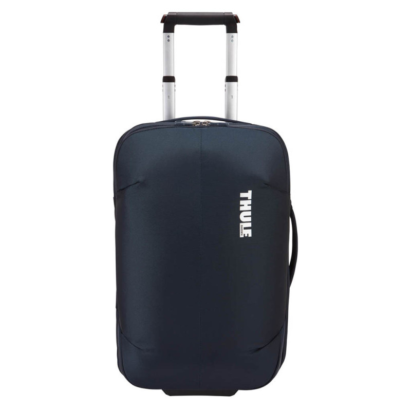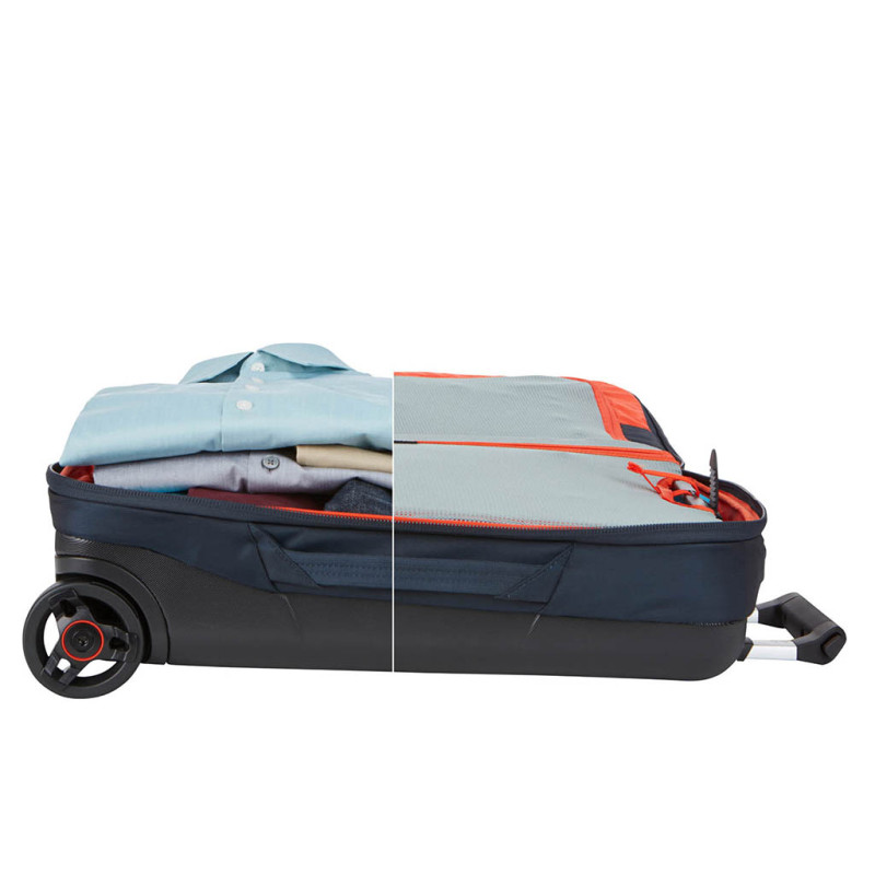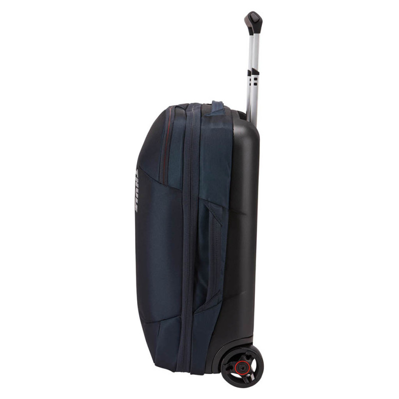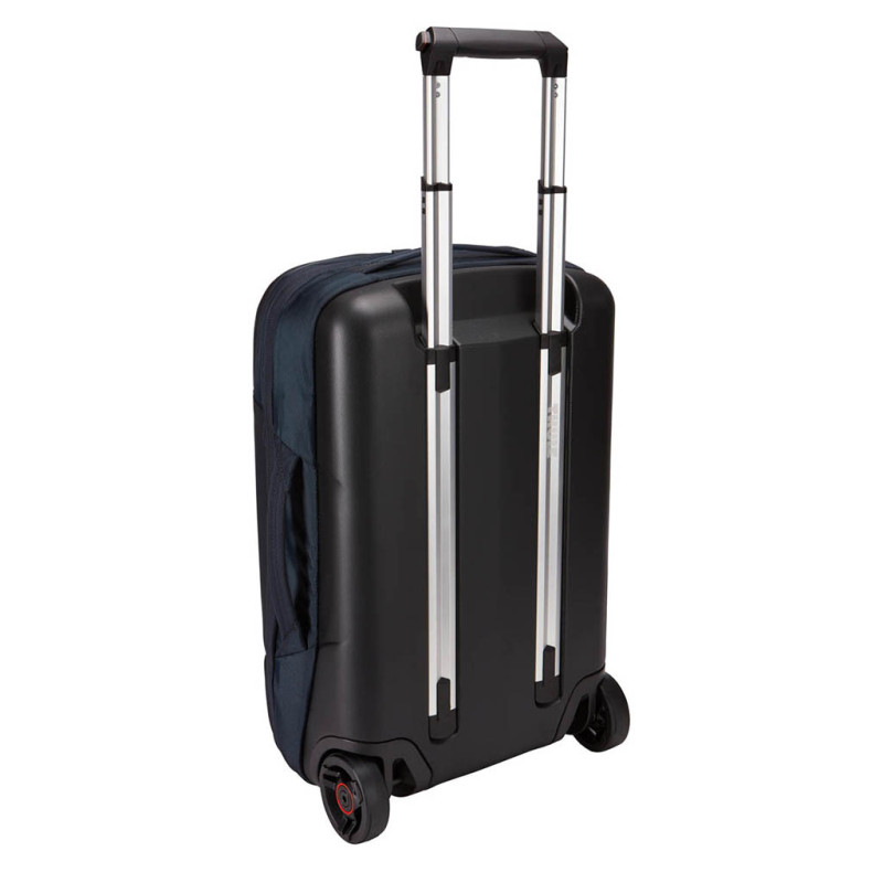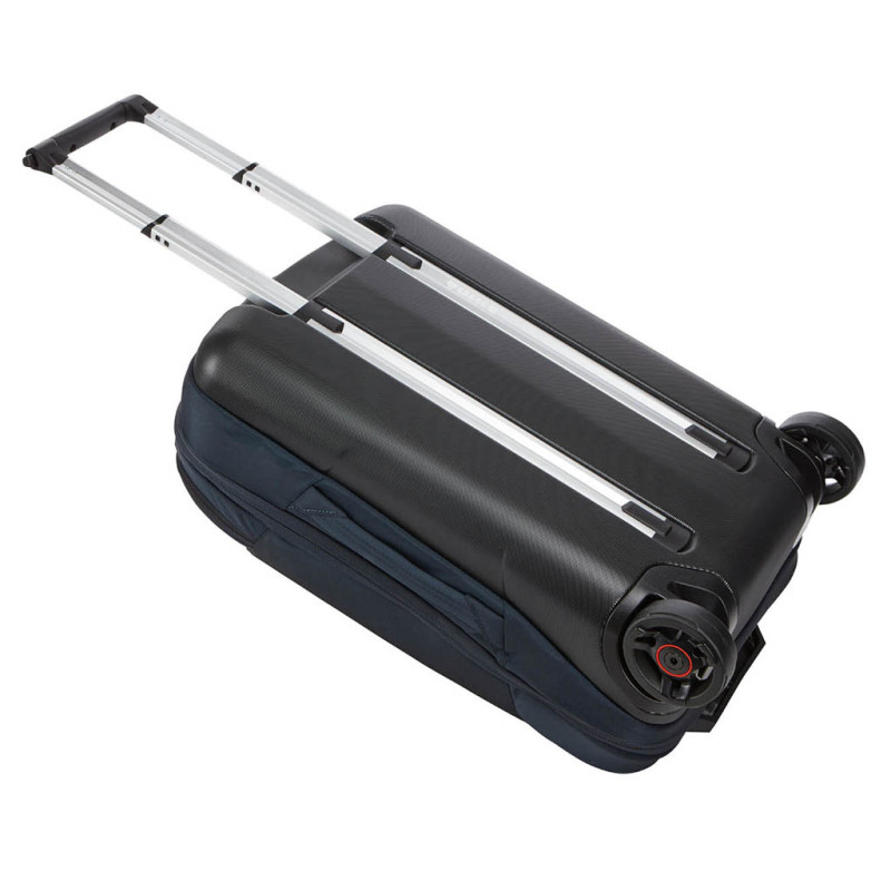 Сумка темно-синього кольору на двох колесах зробить легкою будь-яку дорогу. Модель Carry-On 55 см має полікарбонатну задню панель, завдяки якій аксесуар стає ударостійким. Колеса збільшені для того, щоб з легкістю долати будь-які перешкоди, що виникли. Телескопічна ручка плавно висувається з корпусу, в якому вона повністю захищена від поломки.