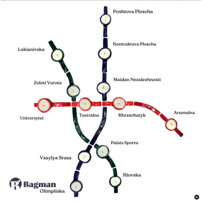 Колір кожної свічки відповідає кольору лінії метро,на якій вона знаходиться. В колекцію входять лише центральні станції київського метрополітену. Свічки склаються один з одною як конструктор і мають додаткові керамічні блоки для зʼєднання станцій між якими є велика відстань. Зібранні разом підсвічники мають створювати зменшену модель центру карти метро Києва.